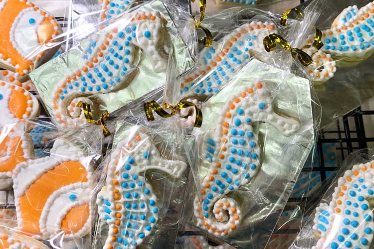 Mailing. I mailed the beach cookies to my family and friends throughout the U.S. (and sent quite a few overseas, too). I always send them Priority Mail through the U.S. Post Office. I use the boxes provided by the Post Office and lots of bubble wrap! In almost all cases, the cookies arrive undamaged. I know the packages are appreciated when they arrive because of the texts I get with all those smiling faces.